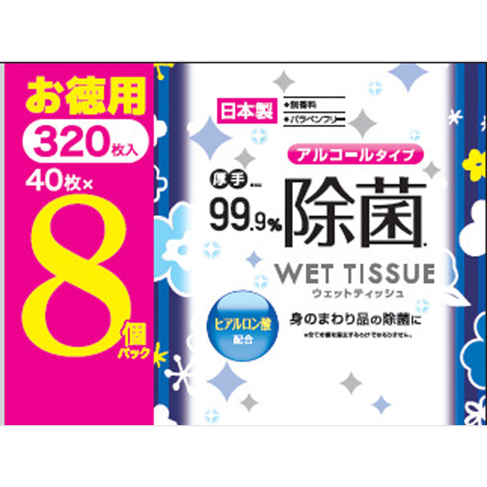 NID 99.9%アルコール除菌ウェットティッシュお徳用パック 40枚×8個