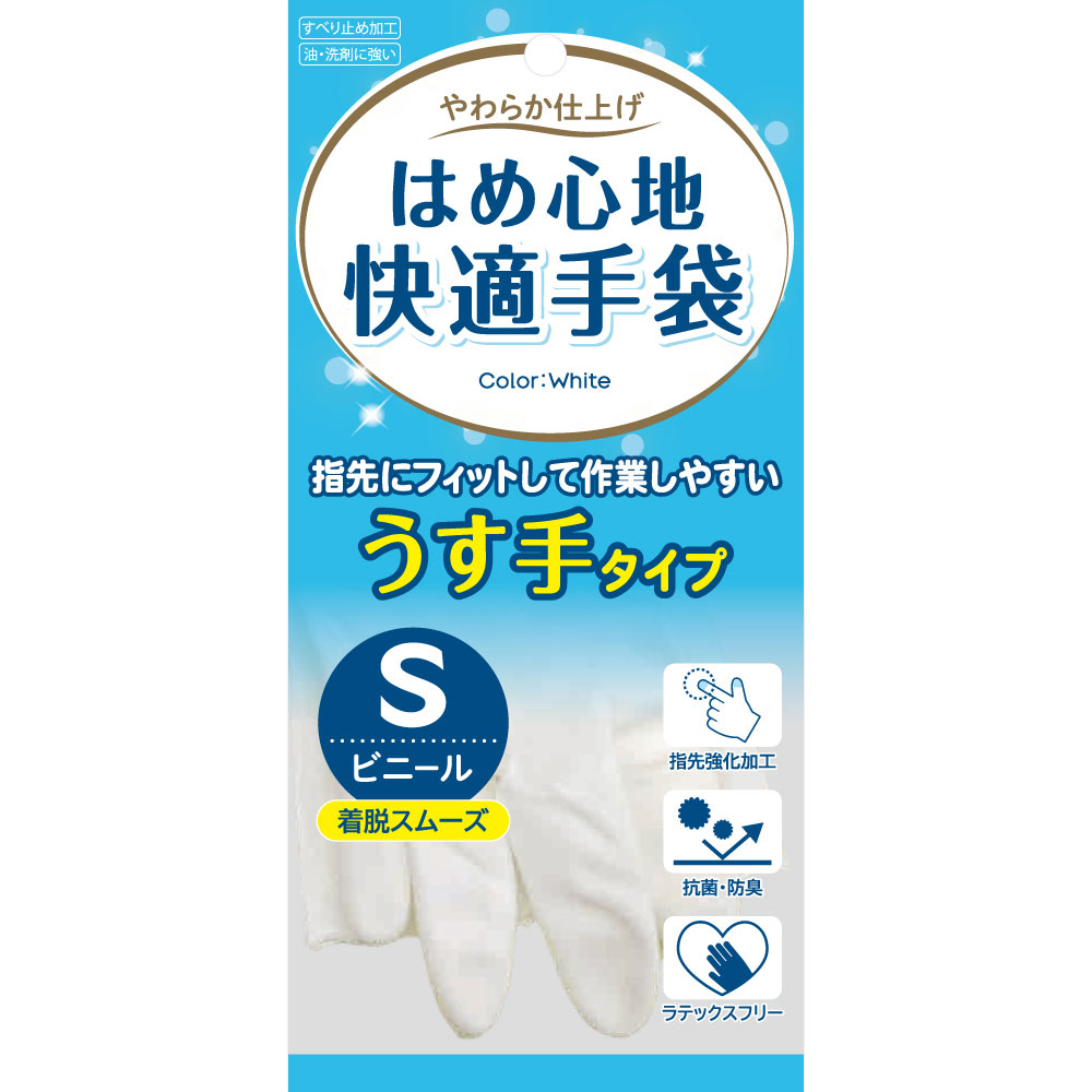 NID はめ心地快適ビニール手袋うす手S 1双 ホワイト