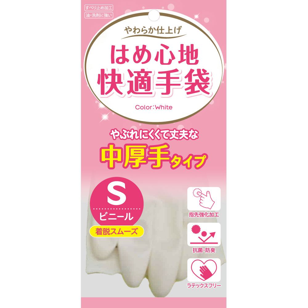 NID はめ心地快適ビニール手袋中厚手S 1双 ライトグレー