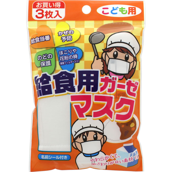 やわらかく、肌ざわりが良い素材したこども用ガーゼマスクです。マスクの中には、ほこりを防ぐフィルターを内蔵しています。給食当番に、のどの保護に、花粉やほこりが気になるときにお使いください。