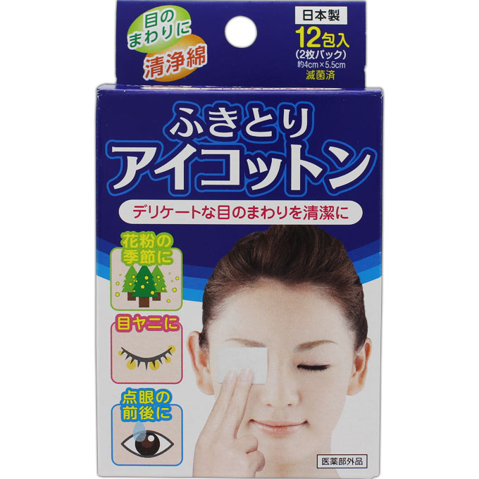目のかゆみや充血時に目のまわりを清拭してスッキリさせます。