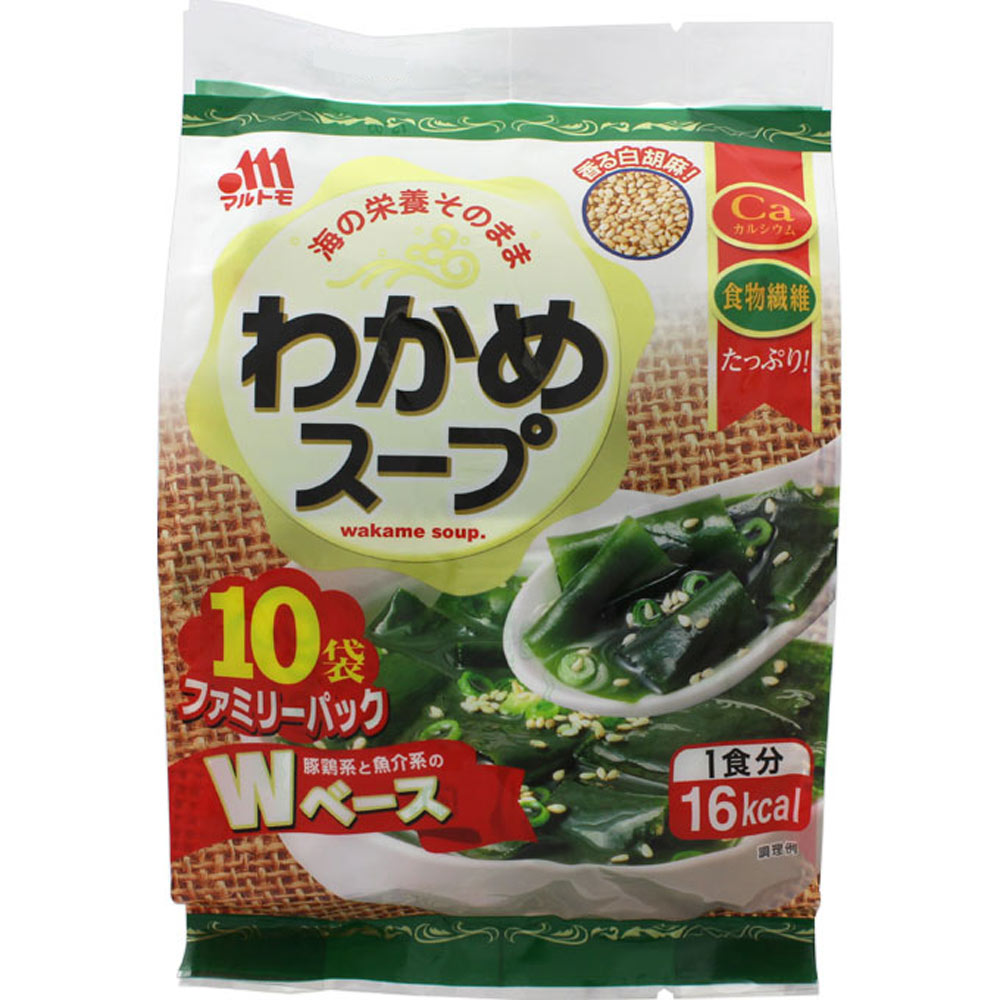 カルシウムと食物繊維が豊富なワカメをたっぷり使った、あっさりコンソメ味のインスタントスープ。白ごまの風味がおいしさを引き立てます。お弁当のプラス1品にも。10袋入り。