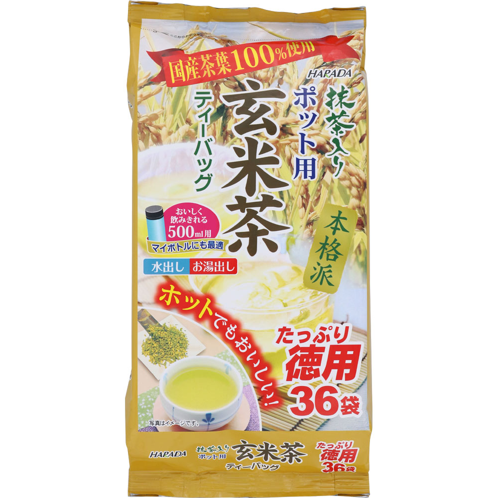国産茶葉を100%使用した、抹茶入りの玄米茶です。抹茶をブレンドすることで、まろやかでありながら、香ばしい玄米の香りが楽しめます。お湯出しでも水出しでもおいしく召し上がれる、簡単・手軽なティーバッグタイプ。マイボトルにもおすすめです。たっぷり徳用36袋入り。