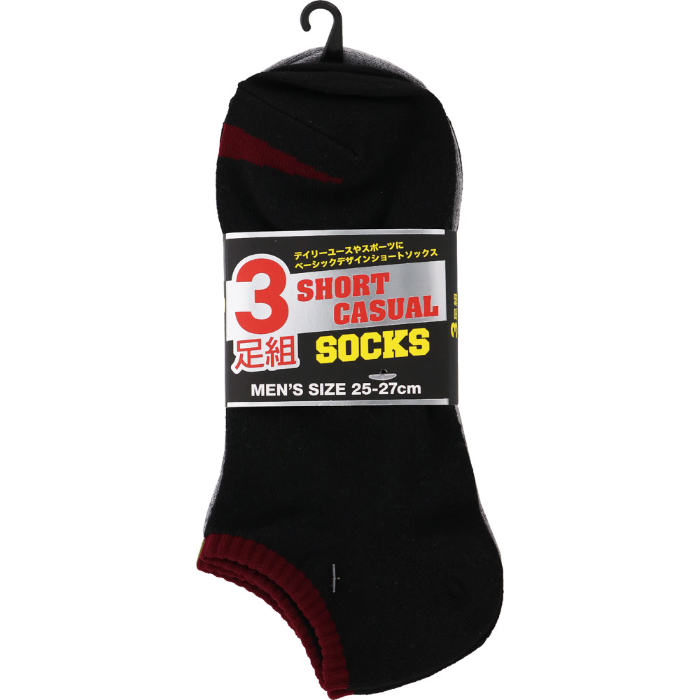 デイリーユースやスポーツ時に使いやすい、紳士用ショート丈3Pソックスです。足底パイルがなく、すっきりと軽い履き心地。