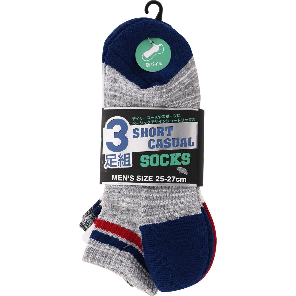 ベーシックデザインで使いやすい紳士用ショート丈3Pソックスです。クッション性に優れた足底パイル仕様で、ふかふかと心地良い履き心地。