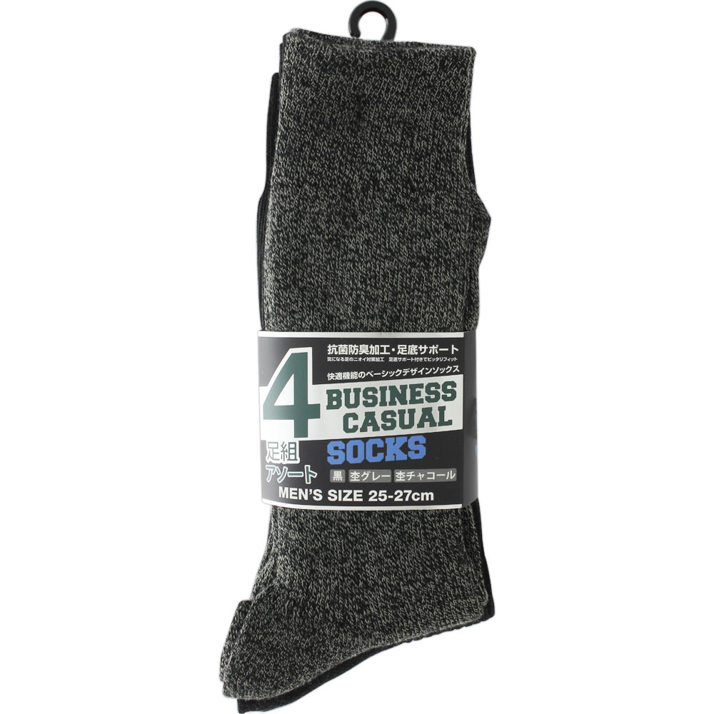 NID 紳士靴下 抗菌防臭 サポート有 カラーアソート 4足 杢グレー/杢チャコール/黒