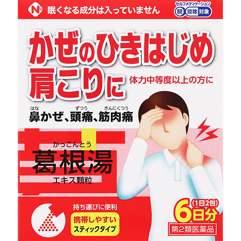中草药处方葛根汤提取物,采用易于吞咽的颗粒及棒状包装。能改善感冒初期的症状,如发烧、发冷和肩膀僵硬。适用于2岁及以上儿童。不含催眠的成分。2.5g×12包