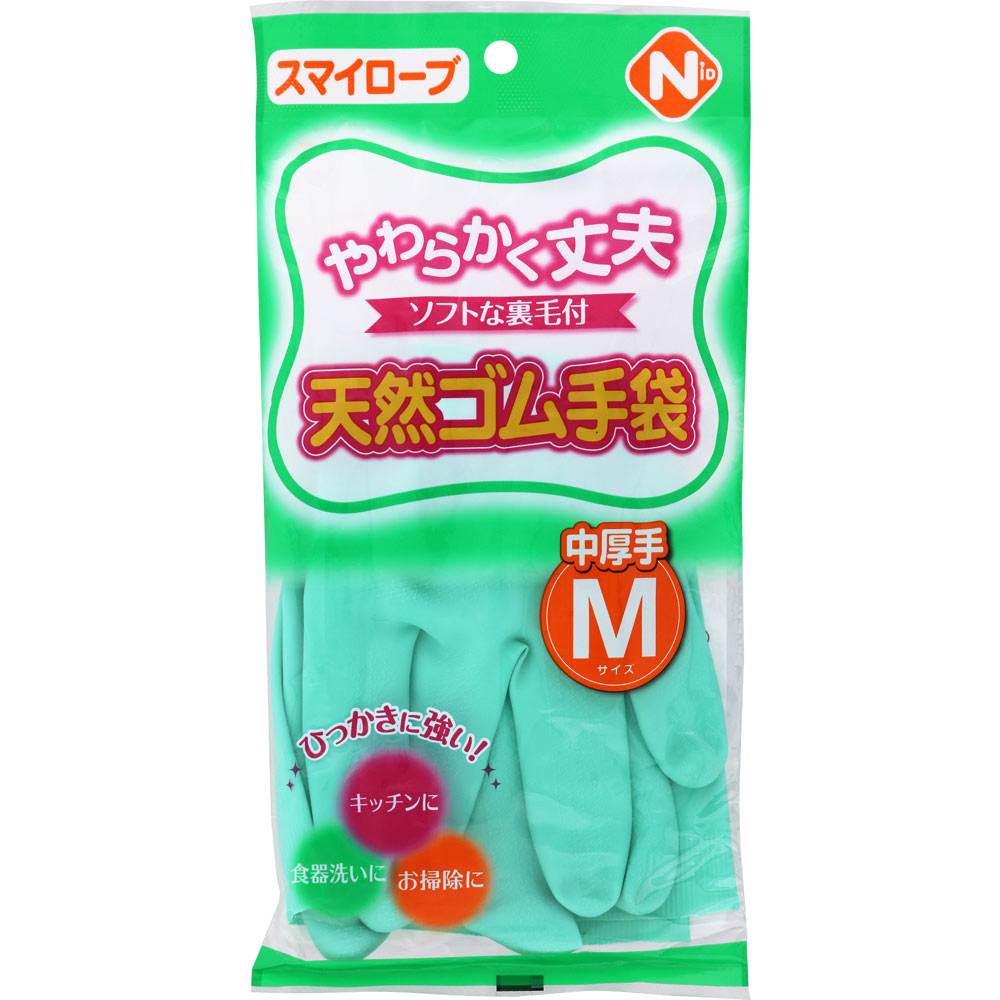 考虑地球环境的 “天然橡胶手套材料是很好的资源”。内侧起绒毛,因此使用方便。