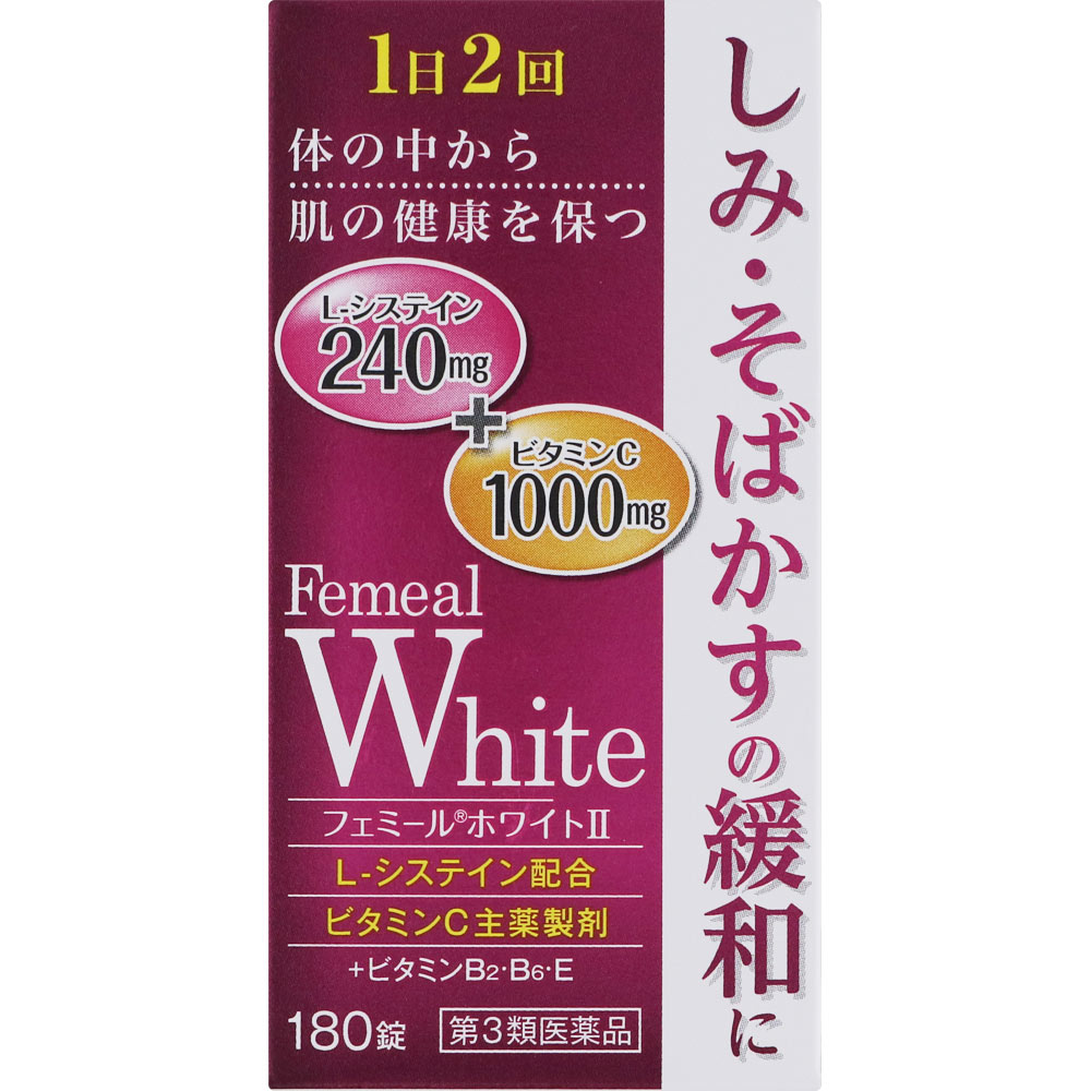 1日服用量6片里,搭配维生素C1000mg、L-半胱氨酸240mg的缓解黑斑、黄褐斑医药品。维生素C抑制黑色素形成,与此同时淡化黑色素沉着,而L-半胱氨酸缓解黑斑、黄褐斑以及改善湿疹起作用。小型而服用方便的薄膜衣片剂 。